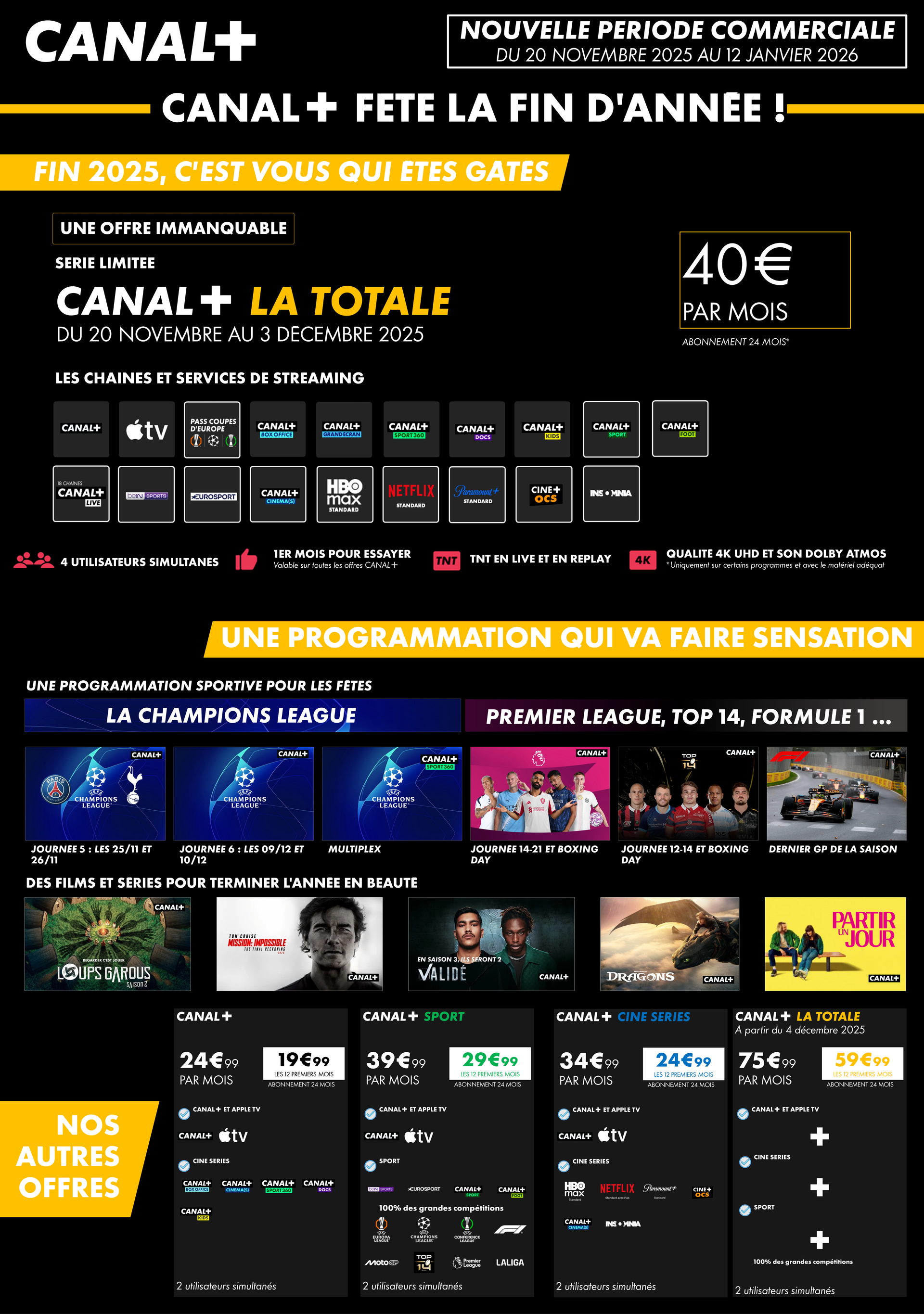CANAL à partir de 19.99 €/mois les 12 premiers mois puis 24.99€/mois